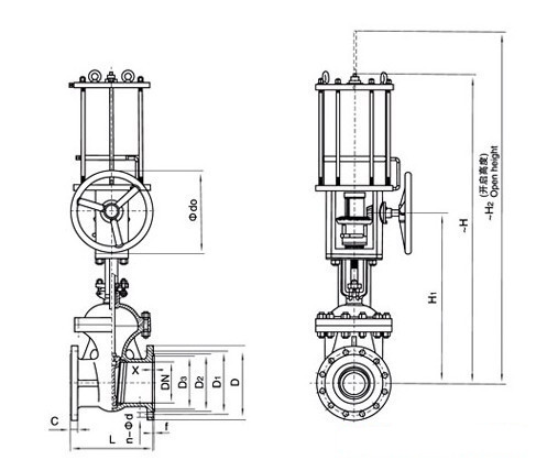 五、氣動(dòng)法蘭閘閥 外形尺寸圖