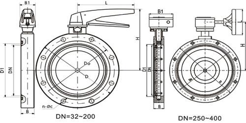 GI手動(dòng)高真空蝶閥 外形尺寸圖