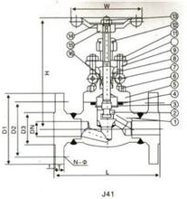 四、J41Y高壓法蘭鍛鋼截止閥 外形尺寸圖
