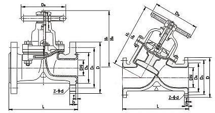 四、直流式襯膠隔膜閥 外形尺寸圖