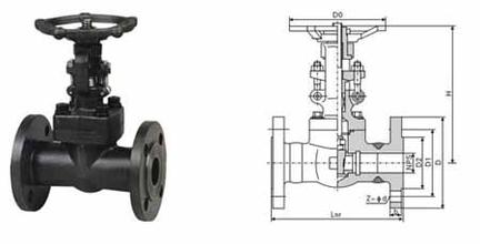 鍛鋼閘閥外形尺寸圖